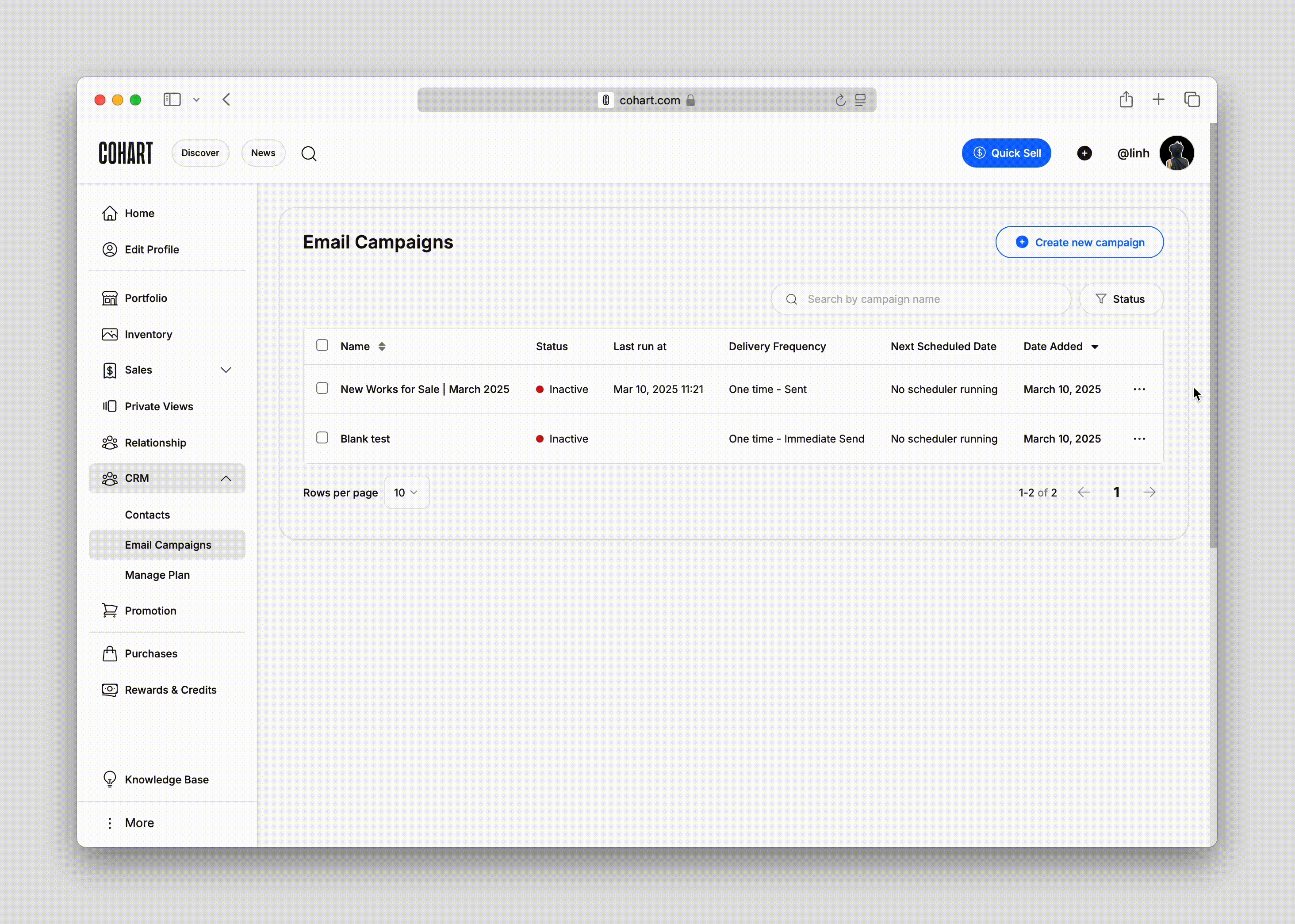 Email Campaigns in Cohart are a powerful tool that allows artists to engage directly with their audience, subscribers, and followers. By sending personalized and automated emails, artists can nurture relationships with their fans, promote their work, and drive traffic to their Cohart profile.