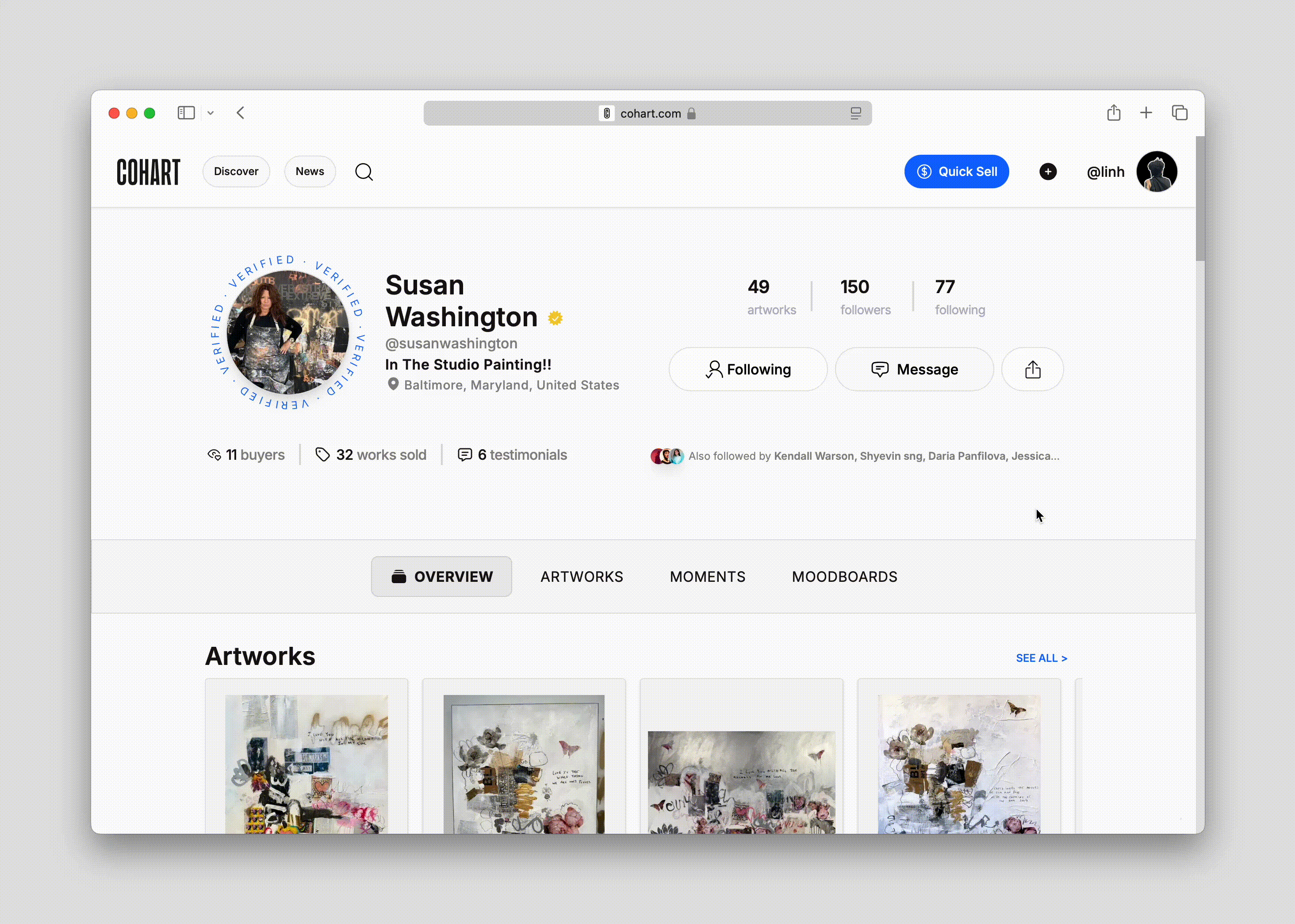 Learn how to send and receive messages on Cohart, directly chat with other users, and link messages to artwork for easy reference.